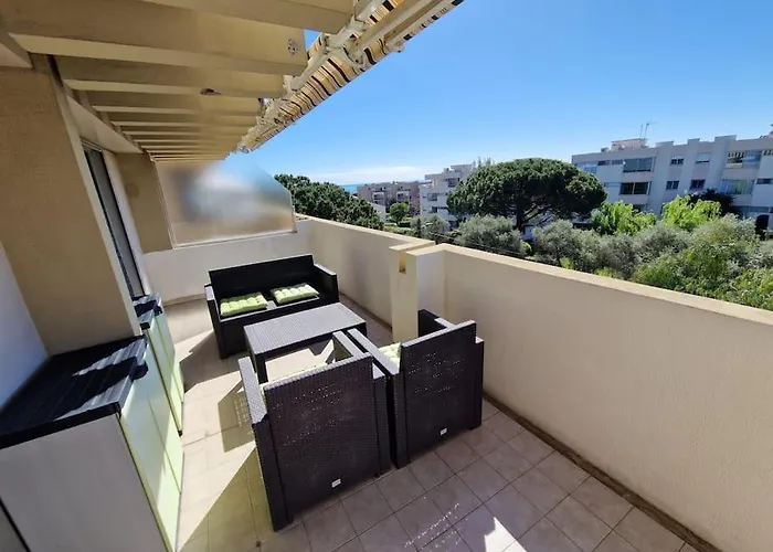 Cozy 1 Bedroom With A Seaview, Ac, Pool And Parking俯瞰着大海,离昂蒂布角开车约需15分钟. 该拥有1卧室的公寓设有露台,1间浴室和大厨房.